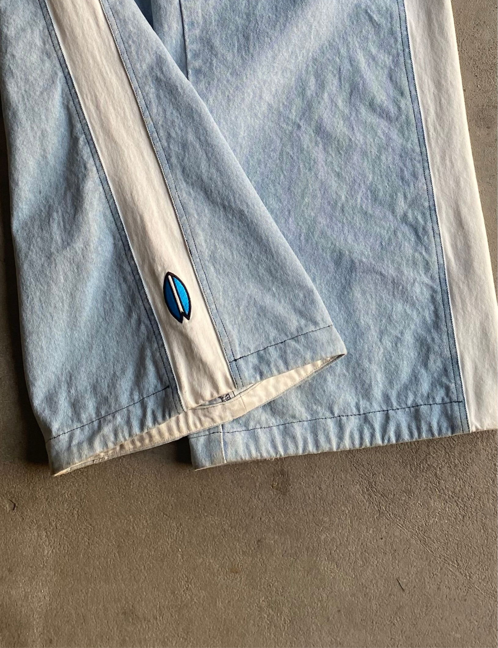 Shoreline Sidestripes offer high quality denim while also giving off a relaxed look. They contain unique pocket designs, with 4 total pockets in the back, a white stream smoothly running down each side of the pants, and a subtle high quality surfboard embroidery on the bottom of the white stripe.